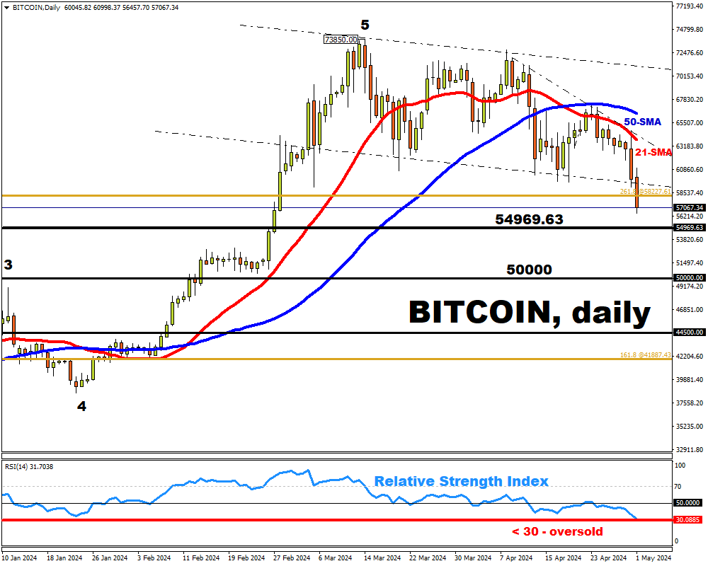 From an Elliot Wave perspective, Bitcoin is in a correction phase following its year-to-date high of $73850, which marked the end of wave 5.