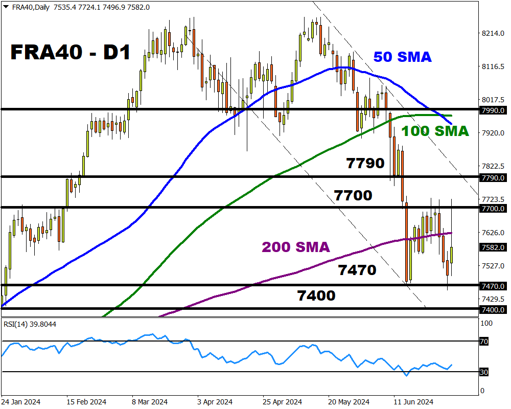 FXTM’s FRA40 initially rebounded on Monday morning as investors welcomed the preliminary results of French parliamentary elections.