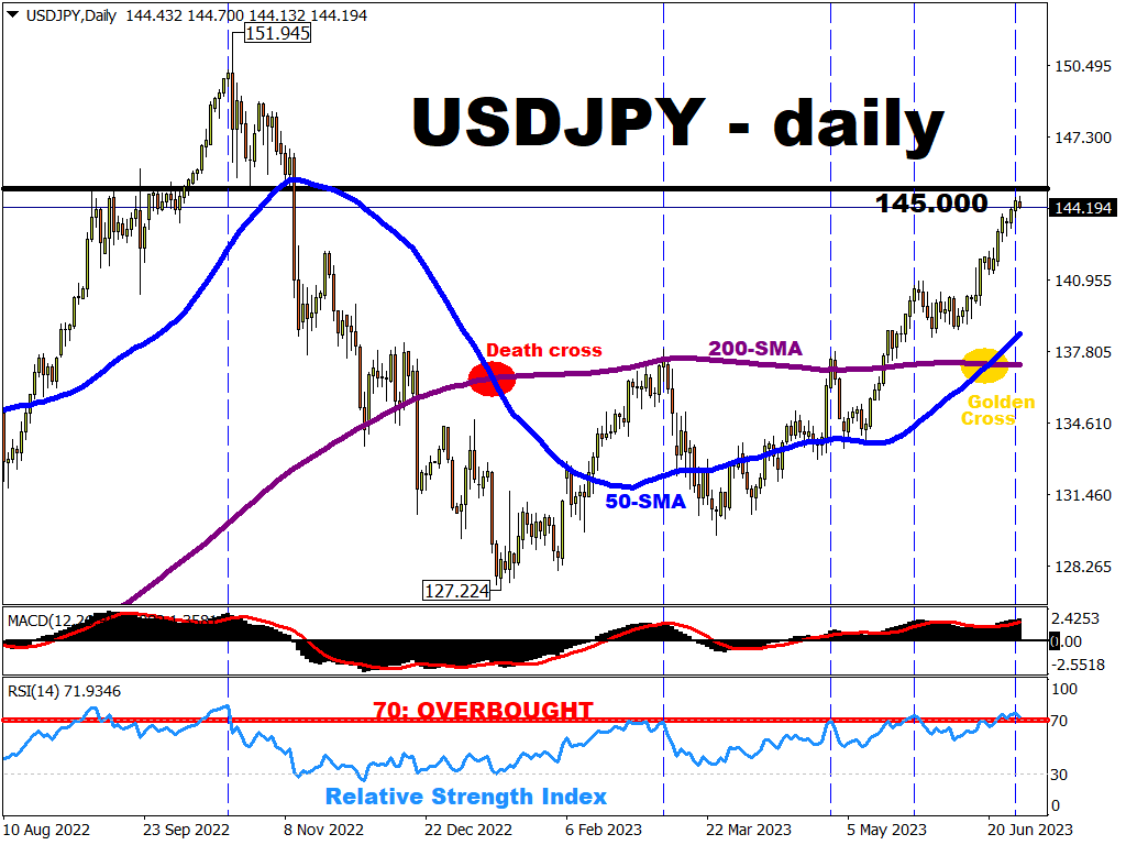 Since then, USDJPY broke out of its downtrend to recently form a golden cross (when 50-day moving average crosses above 200-day moving average - a technical signal that often implies further gains ahead).