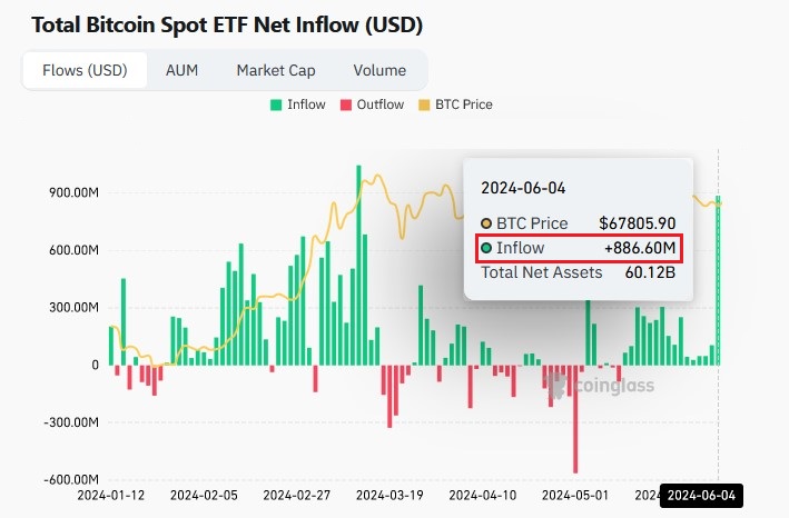 According to data from Coinglass among other sources, Bitcoin ETFs saw a whopping $886.6 million inflows on Tuesday!