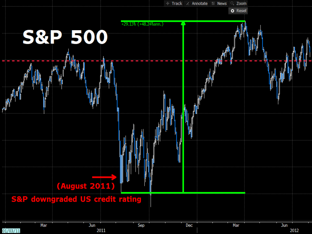 After all, long-time investors will point to how the S&P 500 – the benchmark for US stock markets - recovered all its losses within 6 months after that first-ever US credit ratings downgrade back in August 2011.