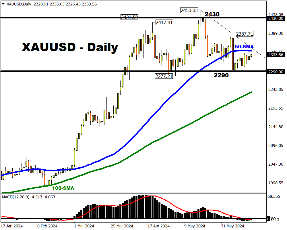Although edging higher at the time of writing, gold has been trading back below its 50-day simple moving average (SMA) for the first time since February 2024.