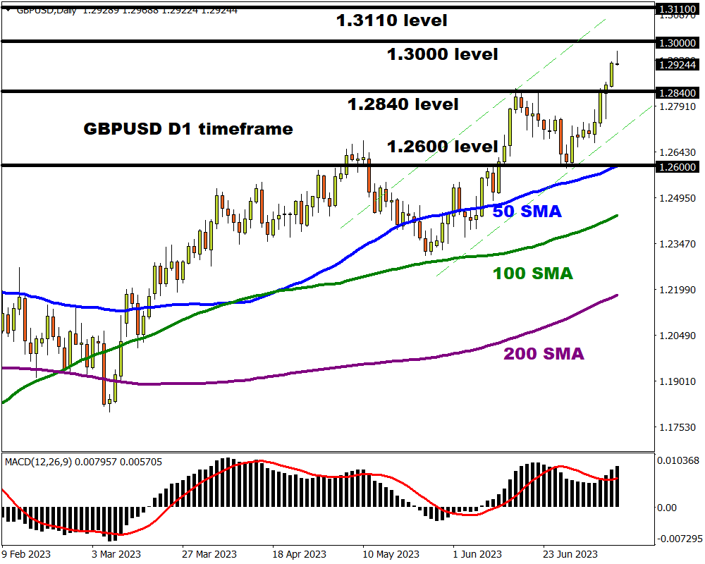 The GBPUSD hit a fresh 2023 high this morning. Prices remain firmly bullish on the daily charts as there have been consistently higher highs and higher lows. A solid breakout and daily close above 1.3000 could open the doors towards 1.3110. Should 1.3000 prove to be strong resistance, prices may slip back towards 1.2840.