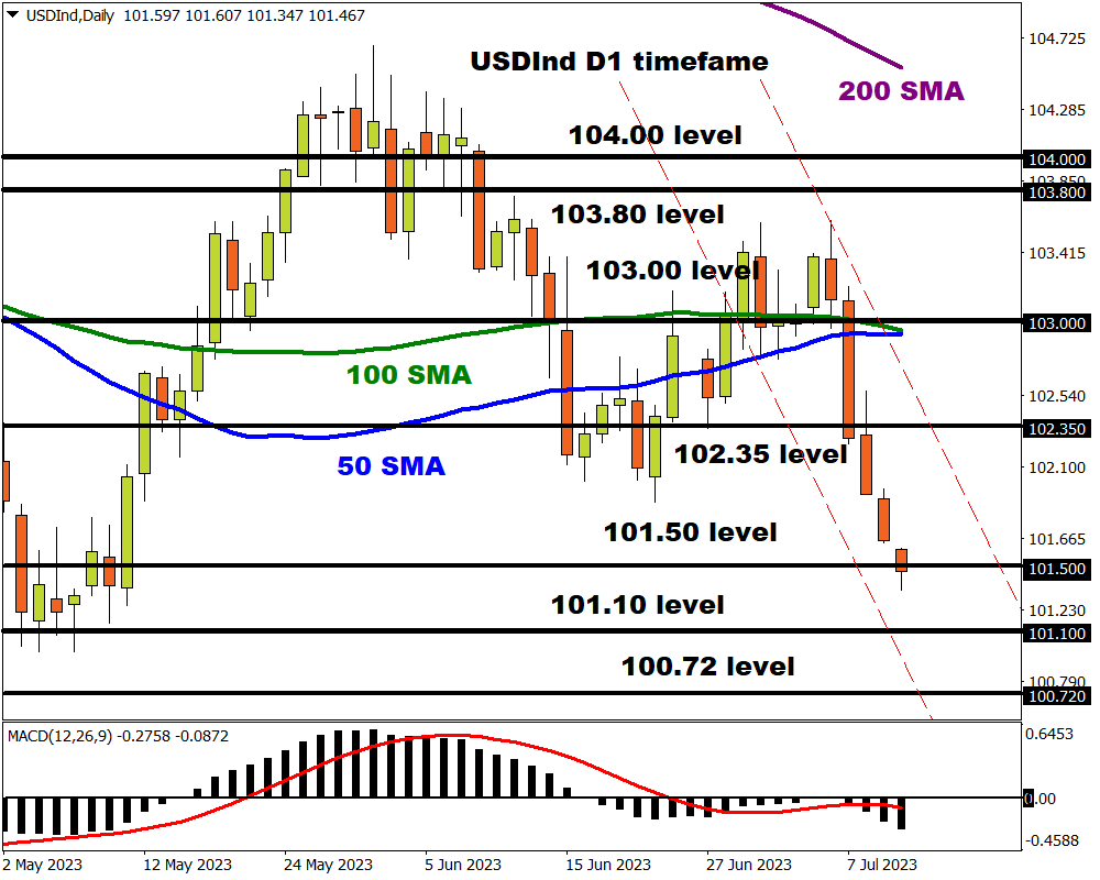 A weaker dollar has sent the USDJPY tumbling toward the 138.80 support level. A breakdown below this point could see a further selloff towards 138.00 and the 200-day SMA around 137.10. Should prices rebound from 138.80, we could see 141.00 and higher.