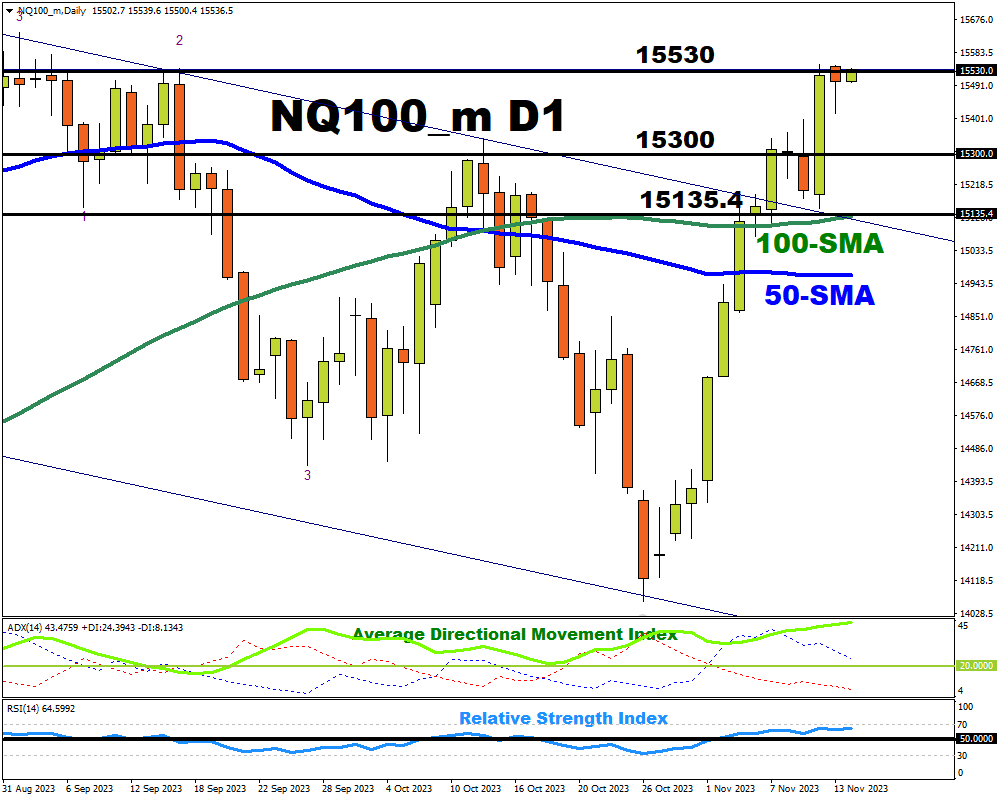 If November's CPI data comes out lower-than expected, this should encourage NQ100_m bulls to charge on.
