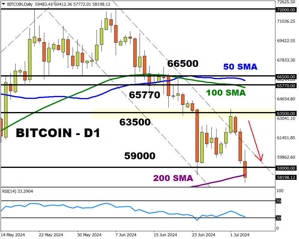 2) Bitcoin tumbles below key support