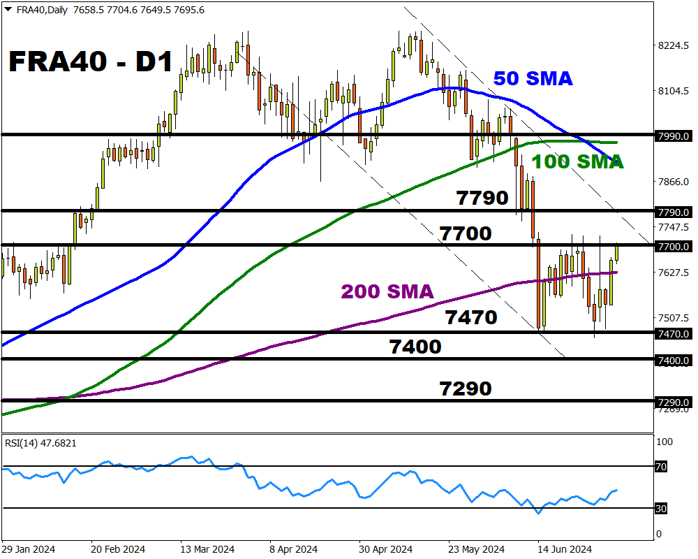Note: More volatility could be on the horizon for the FRA40 due to the second round of French elections on Sunday 7th July.