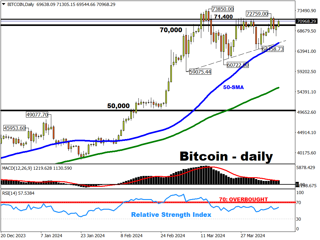 The world's oldest crypto has to vanquish the $71,400 resistance in order to have another shot at posting a new record high.
