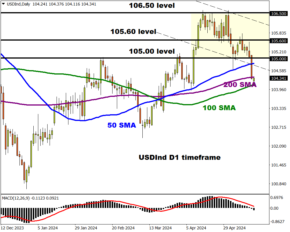 The USDInd collapsed like a house of cards on Wednesday after soft US inflation data reinforced bets around the Fed cutting rates in 2024.