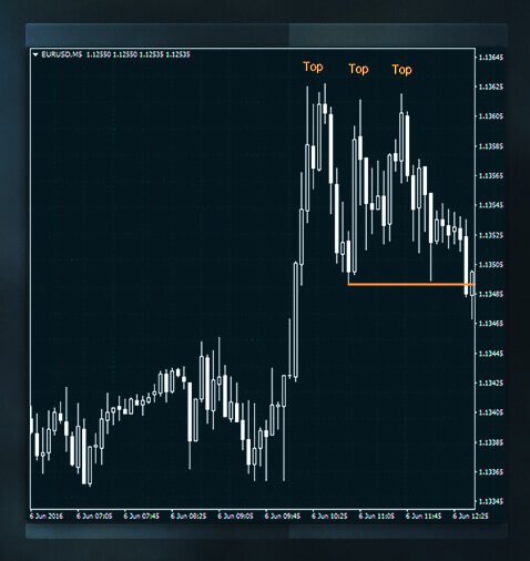 Similar to the Head & Shoulders, the Triple Top is made up of three (almost) equal tops and a significant close below the support (bottom) of the formation. It’s important to have a break below the bottom in order to have a valid Triple Tops. The three tops on their own are not enough!