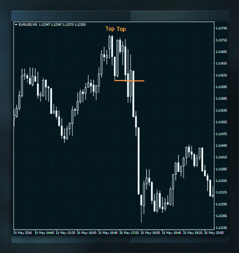 - A significant close below the bottom (with increased volume, if available) indicates the end of the uptrend and the start of a downtrend.