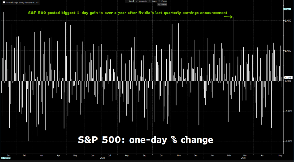 - Nvidia last earnings saw S&P 500’s biggest 1-day jump in over 12 months