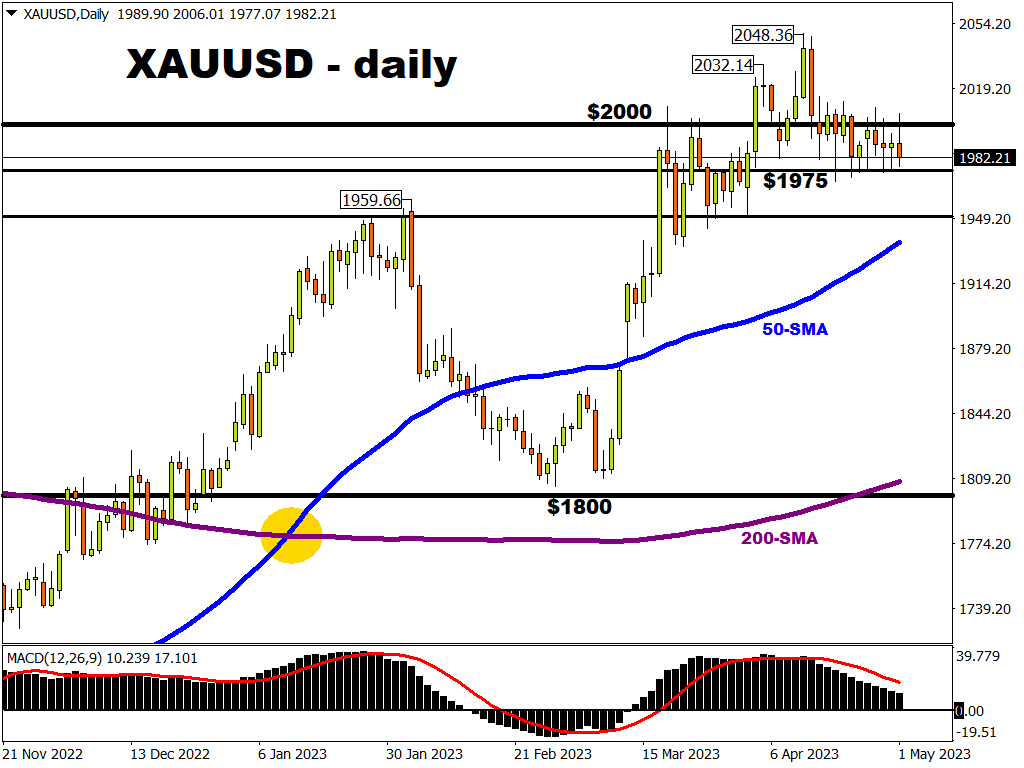 Confirmation from Fed Chair Jerome Powell that US rates would’ve reached its peak this week could see gold prices resurfacing above the $2k mark.