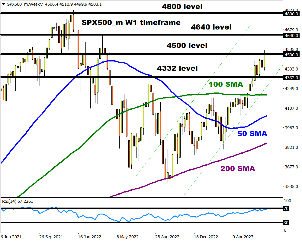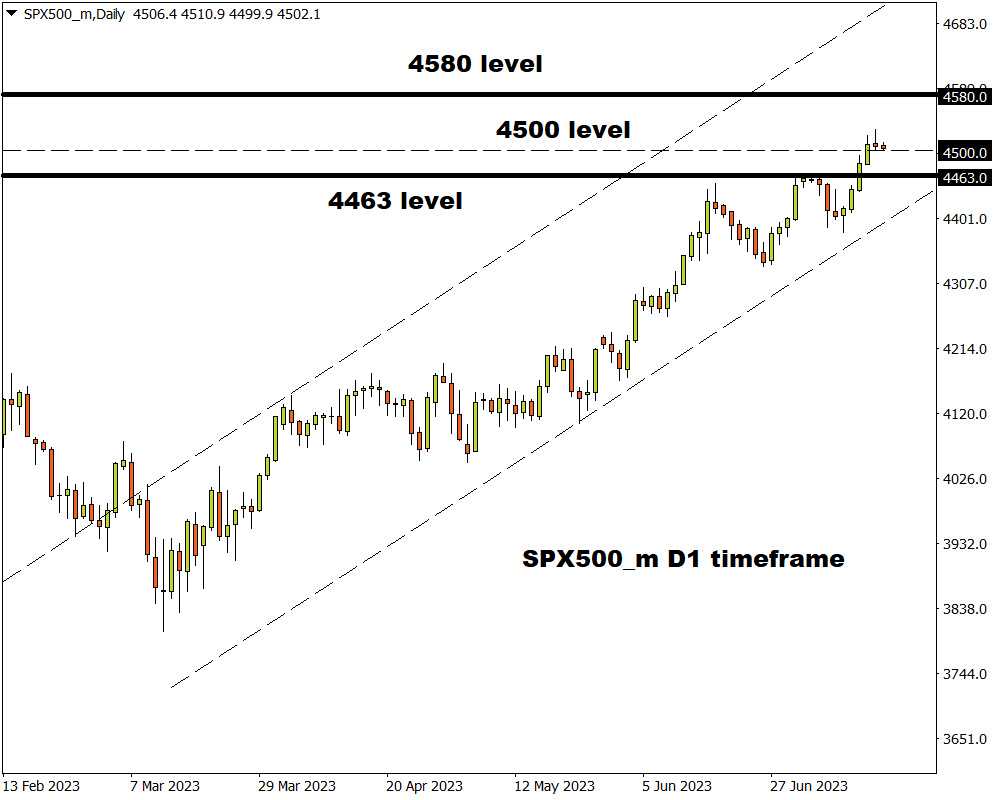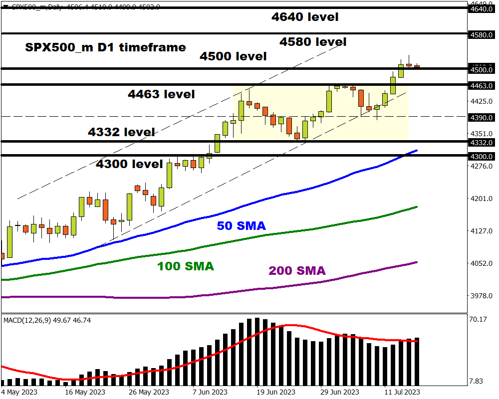 Ultimately, if the company earnings impress and stimulate risk appetite, this could propel the SPX500_m towards a fresh 2023 high beyond 4530. Alternatively, a set of disappointing earnings could see the index experience a decline back towards 4463 and potentially lower.