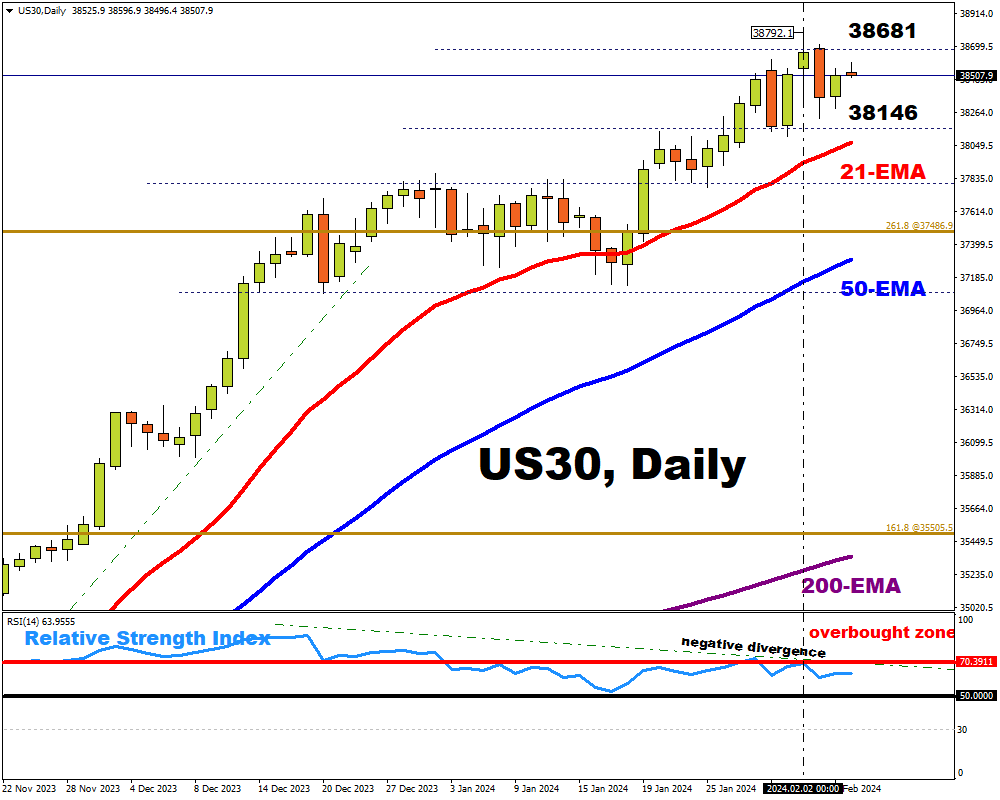 The index bulls(those looking to see the index go higher), will be looking for a strong close above the ranges resistance at 38681 to reach new all0-time highs above 38792.1.