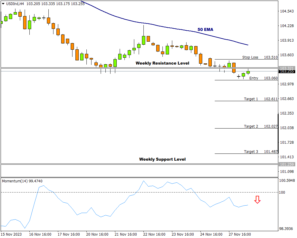 If the weekly resistance level holds and the price reaches the 103.060 level, a short opportunity will be triggered.