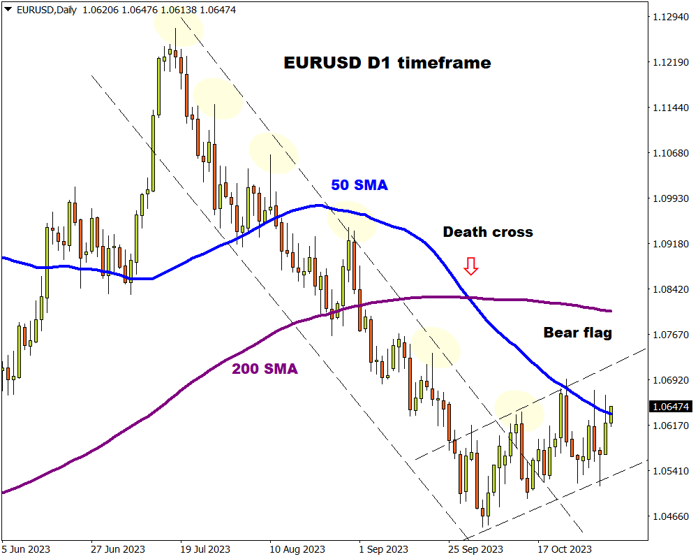 - EURUSD bear flag waits for fresh spark on D1 charts
