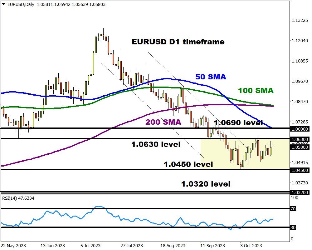 - If US economic data disappoints and there are signs of cooling inflationary pressures, the dollar could take a hit – boosting the EURUSD as a result.