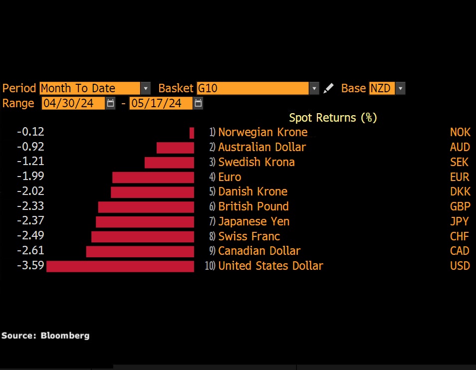 - NZD best performing G10 currency MTD
