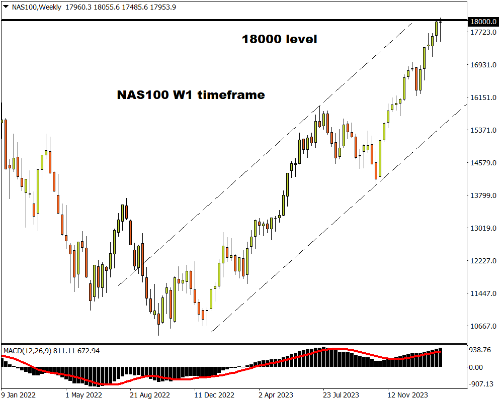 The NAS100, which tracks the benchmark Nasdaq100 index has gained 6% year-to-date thanks to strong corporate earnings and of course the A.I. mania.