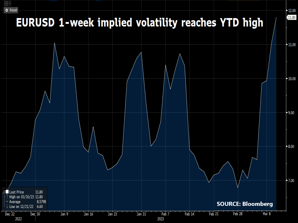 3) EURUSD’s 1-week implied volatility at year-to-date high