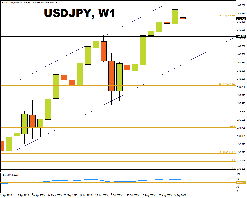 This close is also below the significant 261.8 Fibonacci level when drawn from 134.772, January 6th high to the lows of 16th January 2023 at 127.224 on the weekly chart.